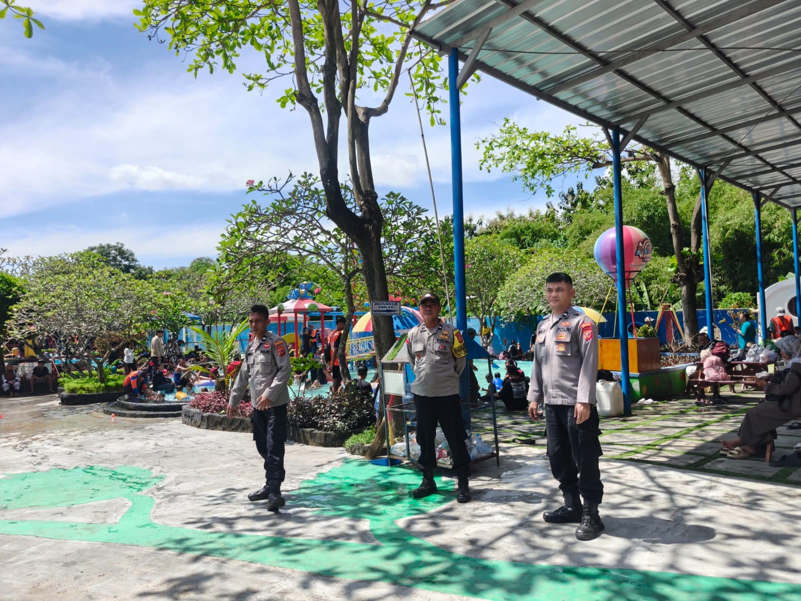 INDRAMAYU – Polsek Haurgeulis Polres Indramayu Polda Jabar melaksanakan pengamanan di Objek Vital Pariwisata Kolam Renang Water Boom Tirta Djaya, Desa Cipancuh, Minggu (22/3/2026).