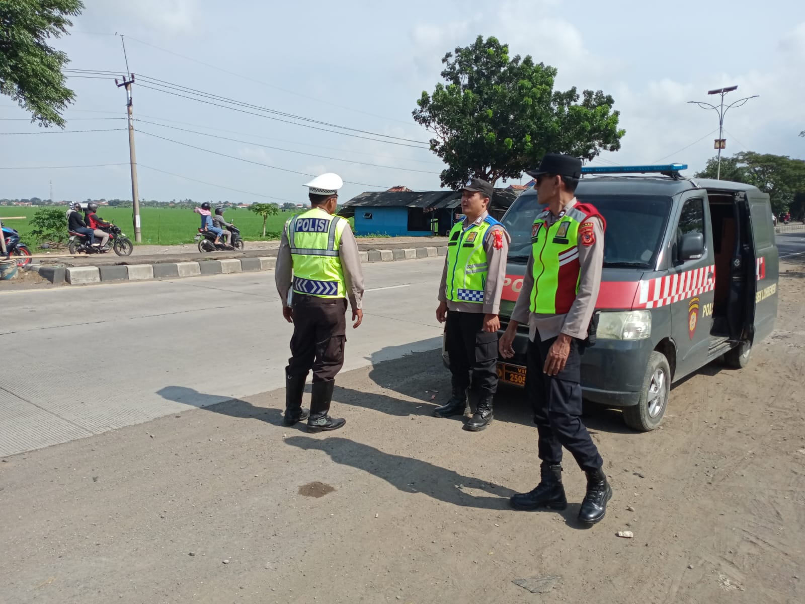 Personel kepolisian melaksanakan patroli intensif di wilayah hukum Polsek Lohbener, Kabupaten Indramayu, guna memastikan kelancaran arus lalu lintas dan keamanan para pemudik.