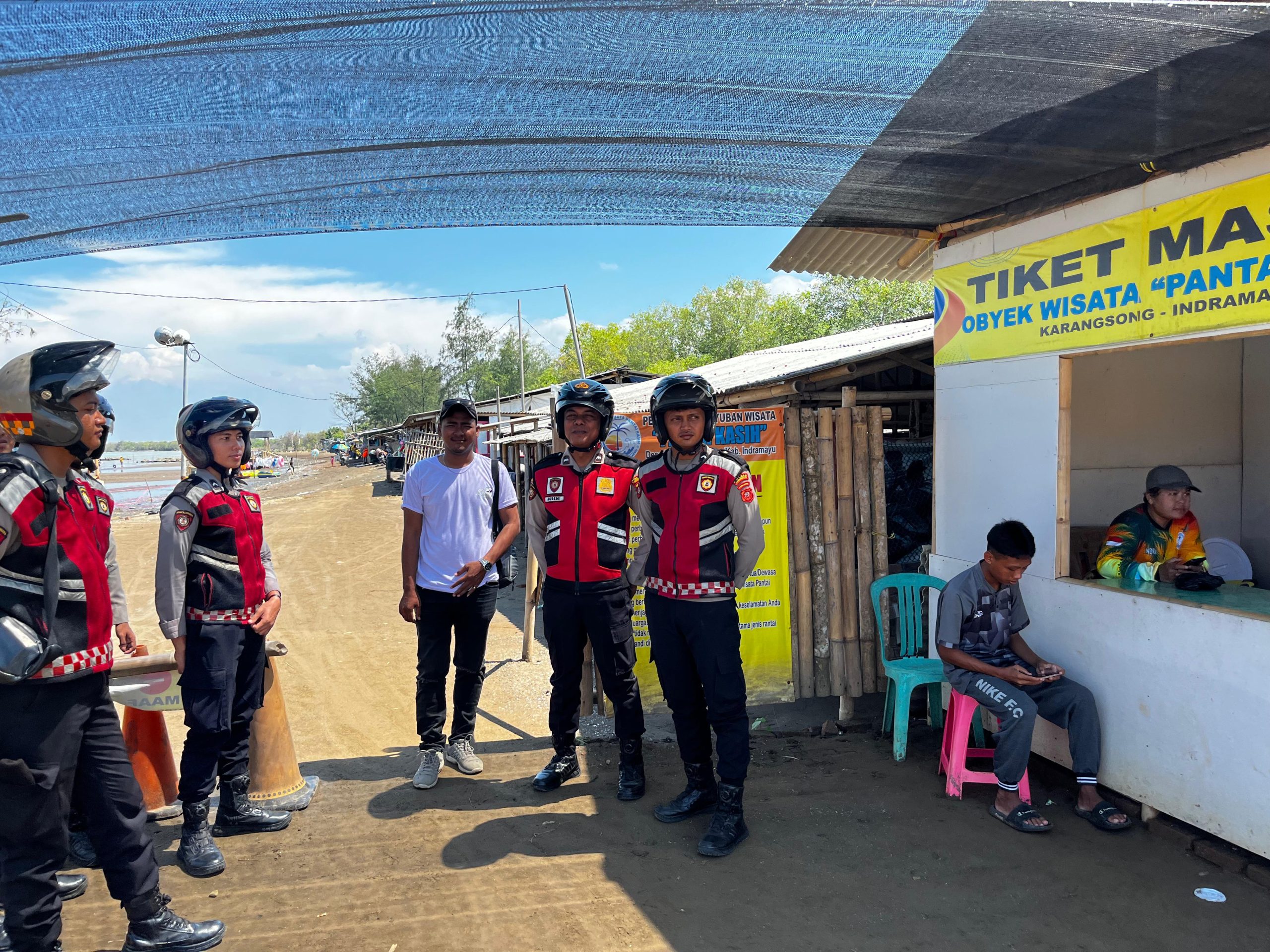 Sabtu siang (28/3/2026), personel Sat Samapta Polres Indramayu melaksanakan patroli dialogis dan pemantauan intensif di kawasan Wisata Pantai Karangsong, Kecamatan Indramayu, Kabupaten Indramayu.