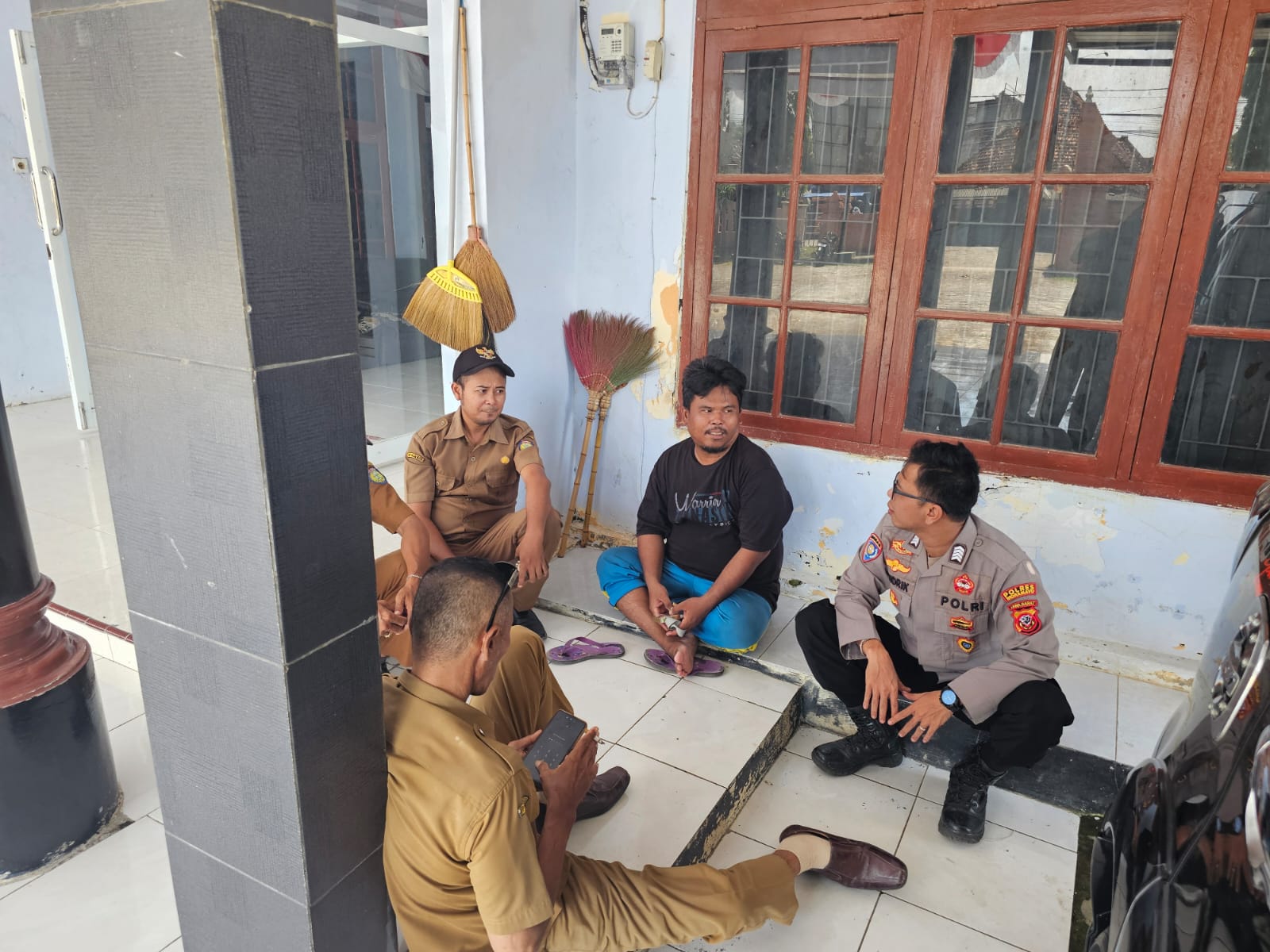 Pantauan di lapangan menunjukkan momen keakraban saat personel Bhabinkamtibmas Polsek Cikedung tak segan duduk lesehan di teras bersama perangkat desa dan warga. Tanpa sekat, dialog mengalir santai membahas berbagai perkembangan situasi keamanan di lingkungan setempat.