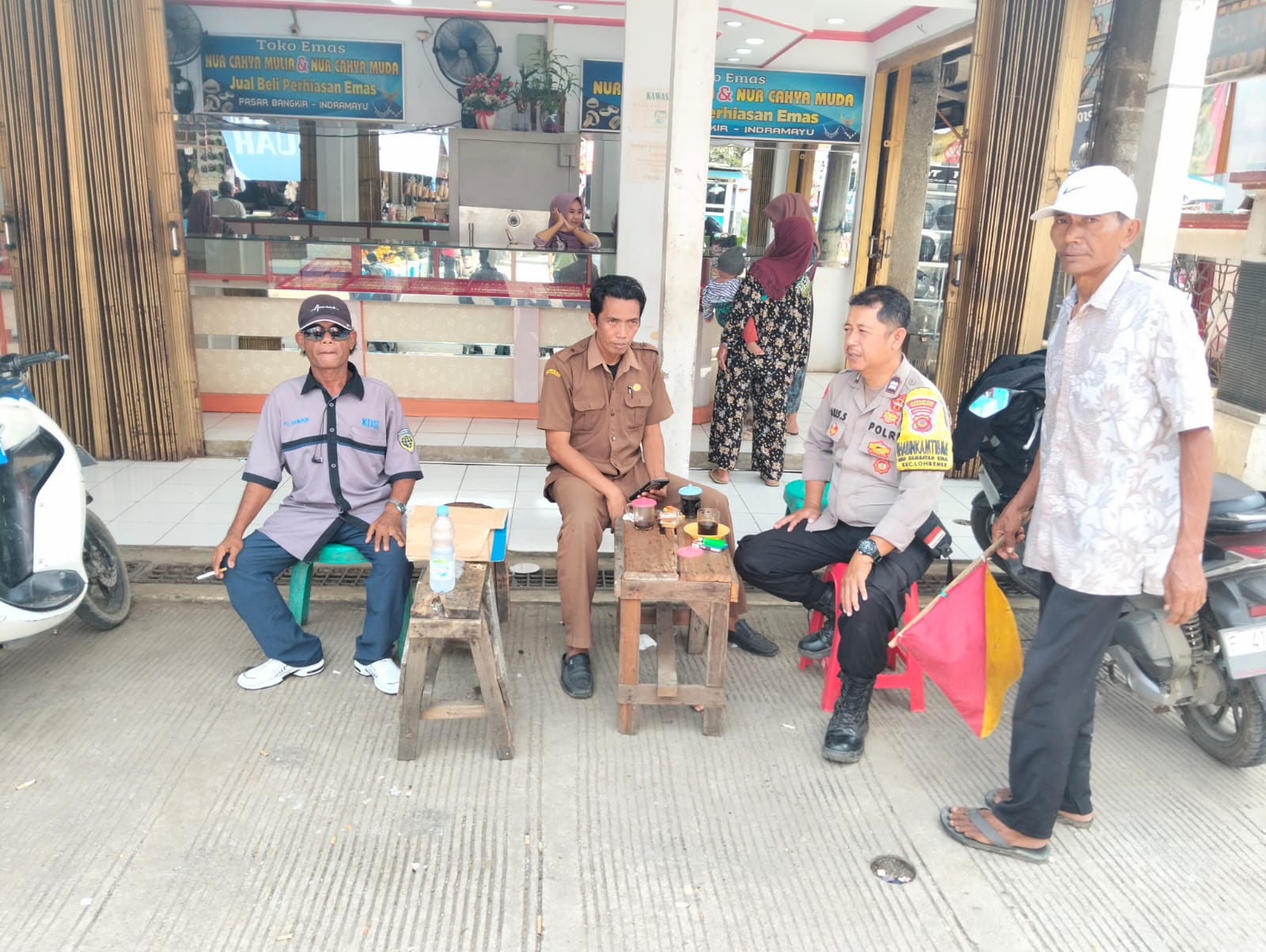 Di tengah keramaian Pasar Bangkir, Desa Rambatan Kulon, Kabupaten Indramayu, seorang personel kepolisian tampak membaur tanpa jarak dengan warga setempat pada Kamis (8/4/2026).