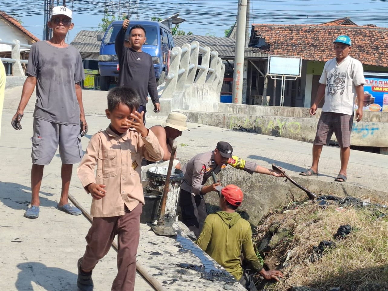 INDRAMAYU – Bhabinkamtibmas Polsek Lohbener Polres Indramayu Polda Jabar Aipda Taryanto, senergi dengan TNI dan pemerintah setempat dalam kegiatan Jumat Bersih yang menyasar saluran air di Desa Pamayahan, Kecamatan Lohbener, Kabupaten Indramayu, Jumat (10/4/2026).