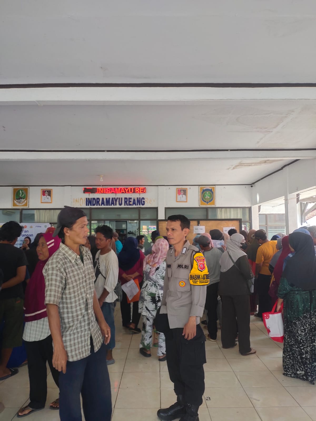 INDRAMAYU – Personel Bhabinkamtibmas Polsek Indramayu Polres Indramayu Polda Jabar Bripka Rusmanto, melaksanakan pengamanan dan monitoring penyaluran bantuan pangan pemerintah di Aula Balai Desa Singaraja, Kecamatan Indramayu, Kabupaten Indramayu, Jumat (10/4/2026).