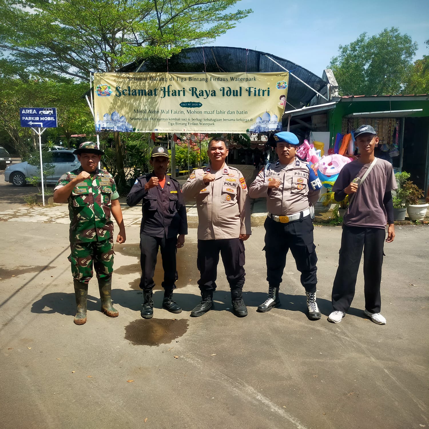 Di lokasi tersebut, petugas berkoordinasi dengan unsur TNI dan pengelola wisata untuk memastikan keamanan pengunjung serta ketertiban di area parkir.
