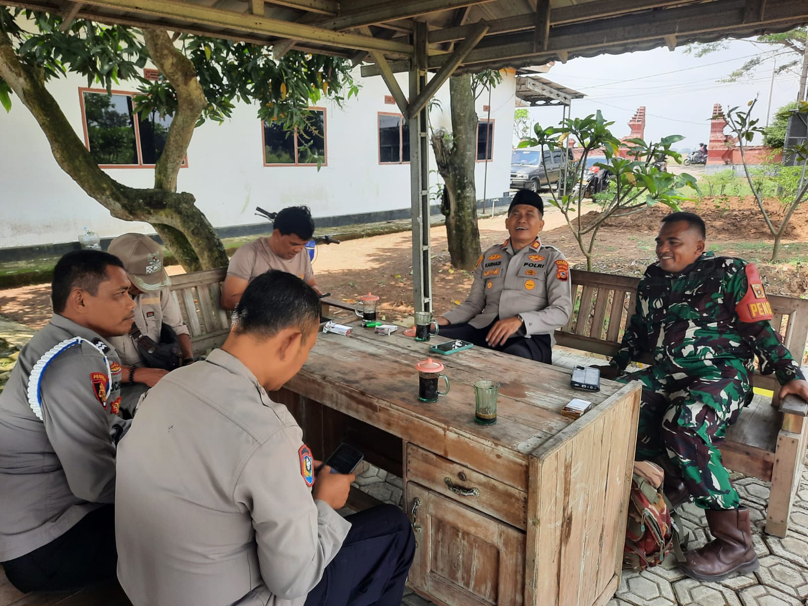 Tanpa batasan formalitas, para personel dari Polsek dan Koramil tampak duduk bersama di sebuah saung, saling bertukar informasi mengenai dinamika sosial serta memantau situasi keamanan lingkungan secara kolaboratif.