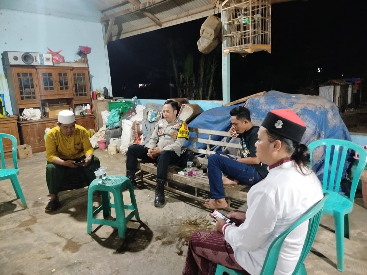 Tanpa sekat formalitas, Bripka Arief tampak duduk membaur bersama warga di salah satu teras rumah, menciptakan suasana kekeluargaan sembari berdialog mengenai situasi keamanan di lingkungan tersebut.