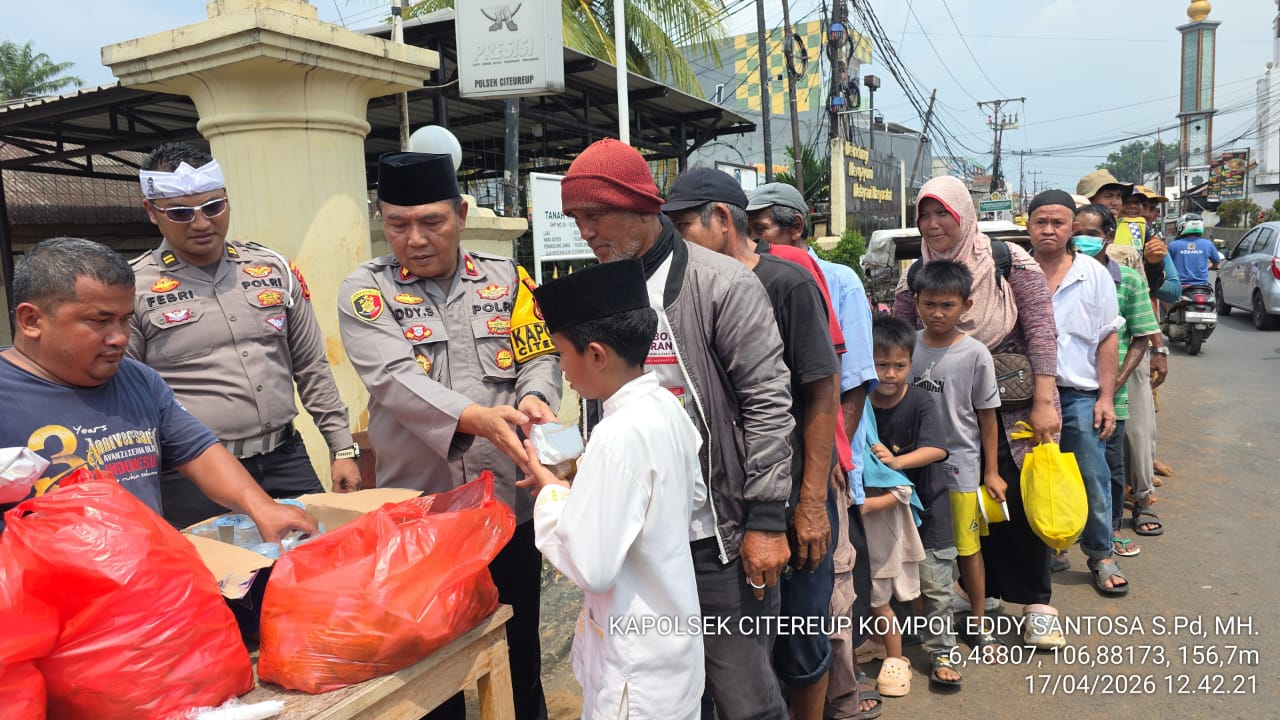 Bogor – Kapolsek Citeureup, Kompol Eddy Santosa, S.Pd., M.H., memimpin langsung kegiatan sosial “Jum’at Berkah” yang dilaksanakan pada Jumat, 18 April 2026, sekitar pukul 13.00 WIB, bertempat di depan Mako Polsek Citeureup, Jl. Mayor Oking, Desa Citeureup, Kecamatan Citeureup, Kabupaten Bogor.