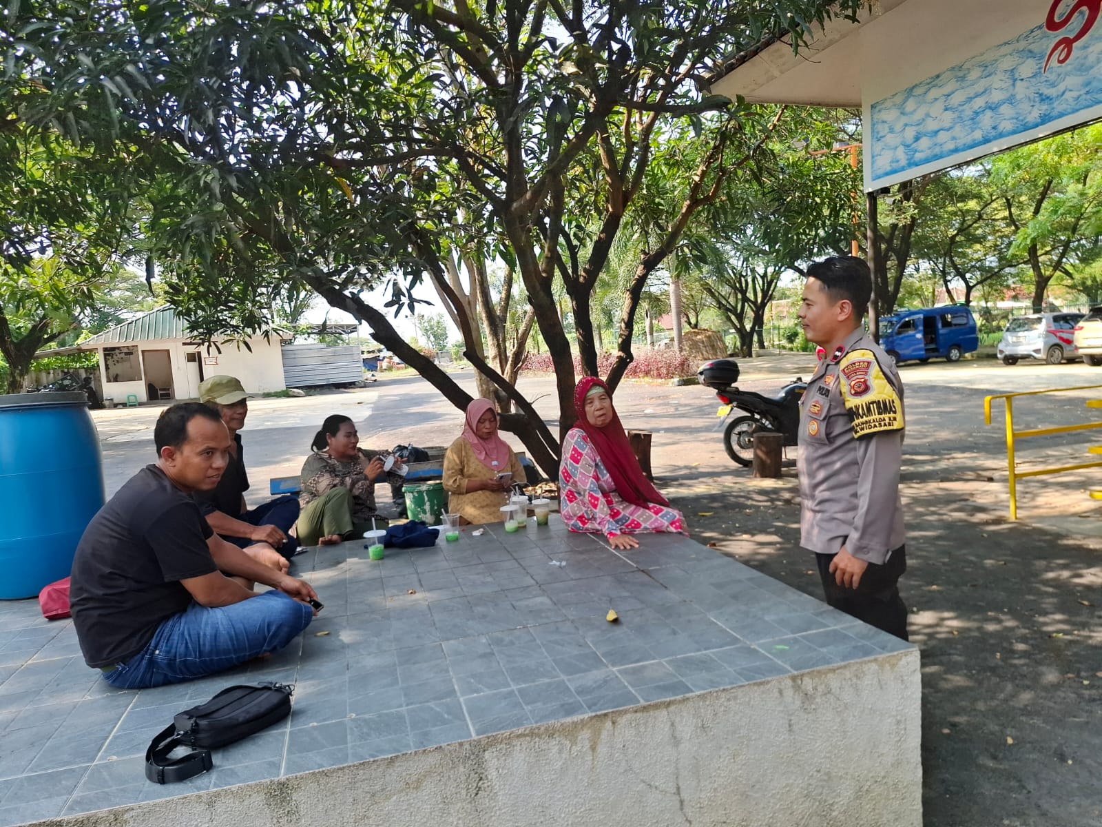 Dalam suasana dialog di ruang terbuka tersebut, Bhabinkamtibmas berinteraksi dengan warga mengenai berbagai hal, mulai dari perkembangan situasi lingkungan hingga upaya bersama dalam menjaga kerukunan antar warga.