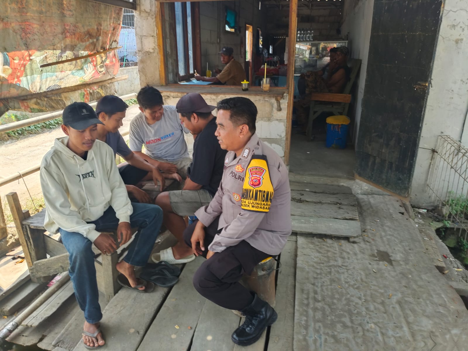Tanpa sekat, petugas kepolisian ini memilih duduk bersama warga di sebuah warung, memanfaatkan momen tersebut untuk melakukan patroli sambang dialogis yang efektif.