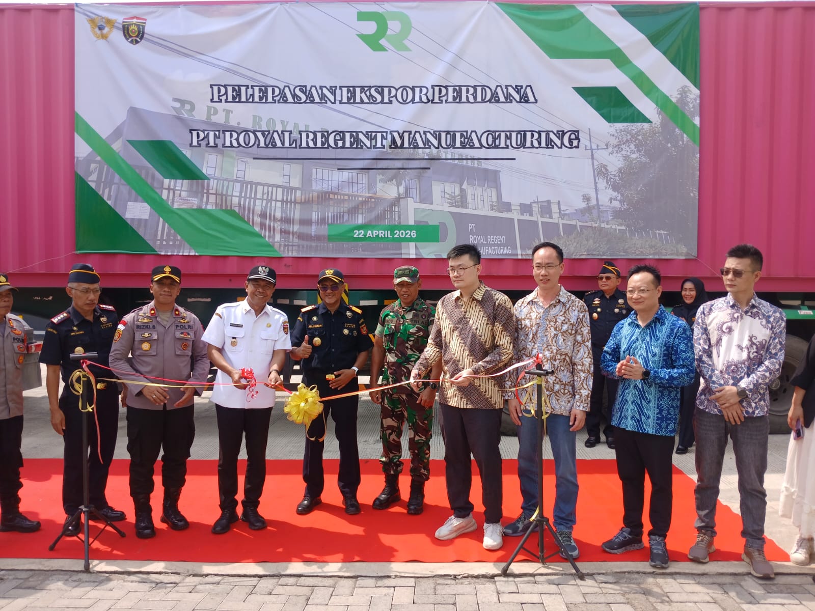 NGAWI, BUSERJATIM.COM GROUP— Kegiatan ekspor perdana yang dilakukan oleh PT Royal Regent Manufacturing berlangsung khidmat di lokasi pabrik yang berada di Jalan Raya Ngawi–Caruban, Desa Karang Tengah, Prandon, Kecamatan Ngawi, Kabupaten Ngawi, Rabu (22/4/2026).