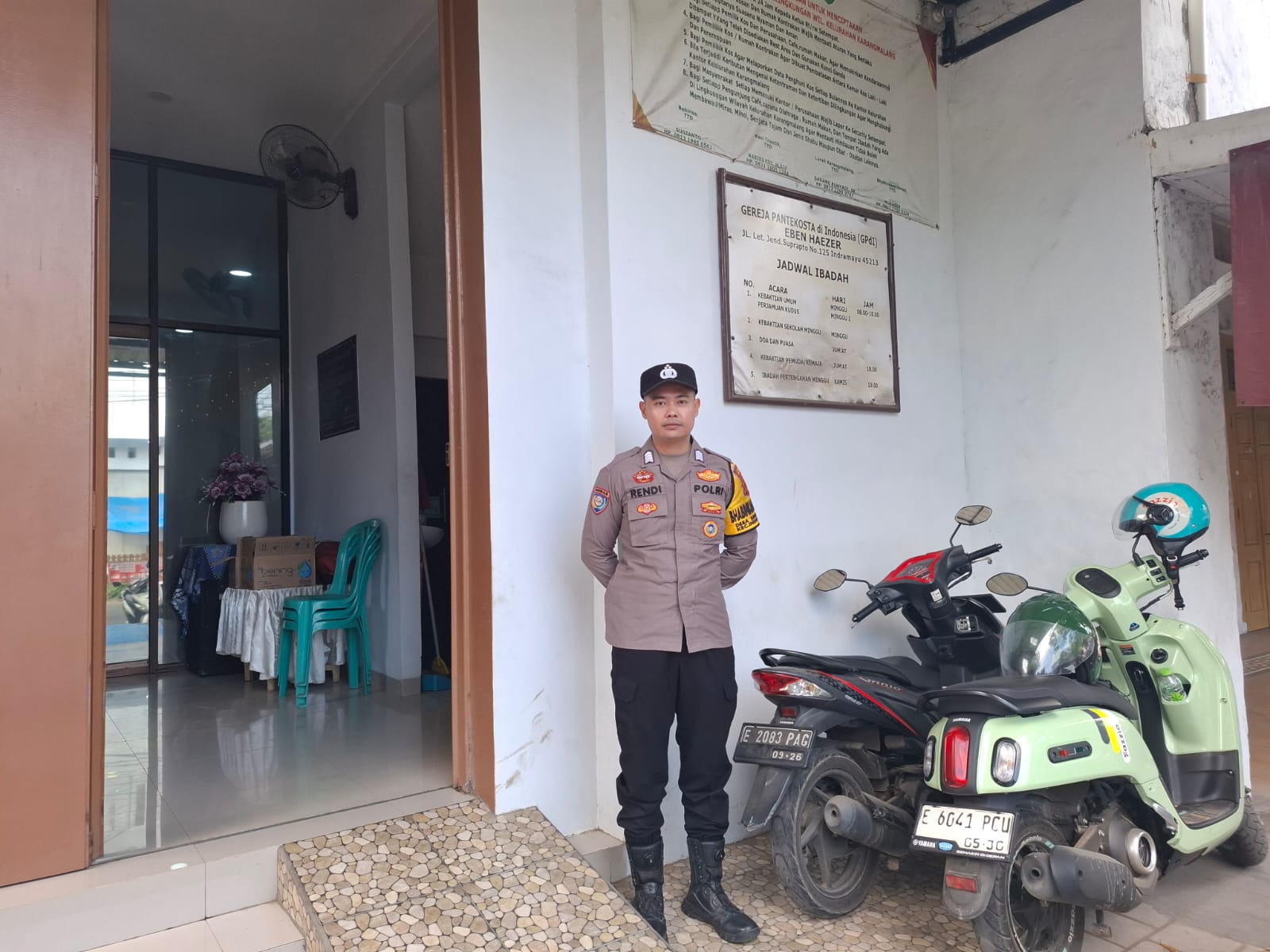 Personel Bhabinkamtibmas terlihat berjaga di berbagai titik gereja, termasuk di antaranya Gedung GPdI Eben Haezer Indramayu dan Gereja Santo Mikael.