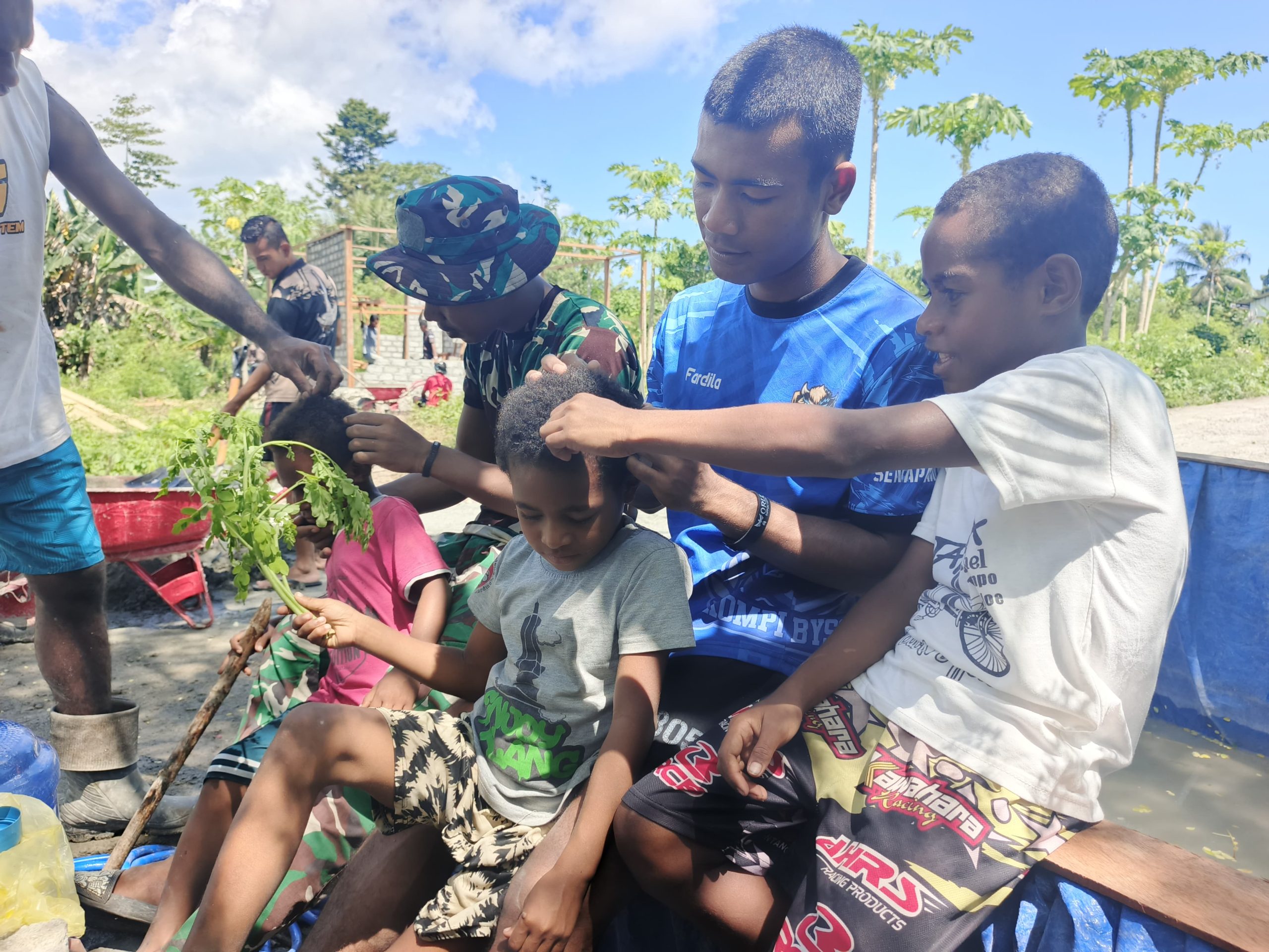Keakraban Terjalin, Di Sela-sela Jadwal Padat, Satgas TMMD Ke-128 Kodim 1801/Manokwari Sempatkan Bermain Bersama Anak-anak