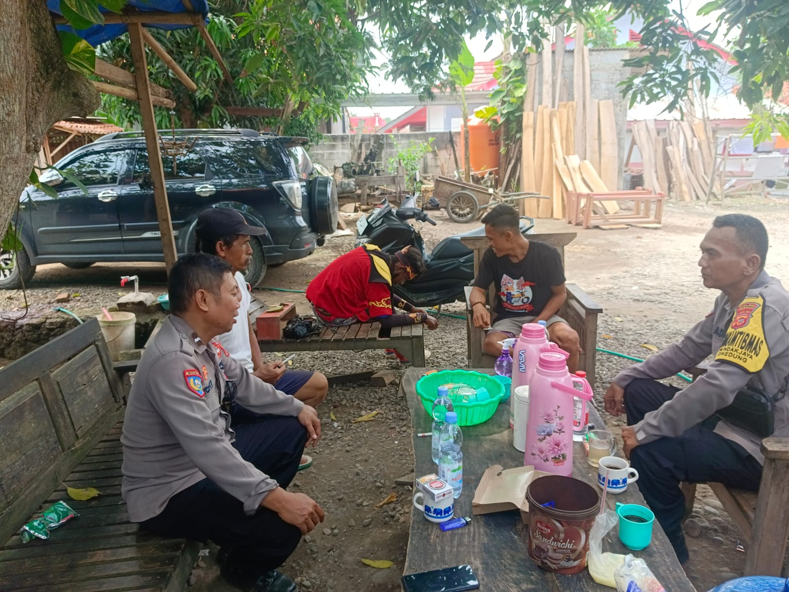 Melalui obrolan hangat di lokasi sambang, AIPDA Rofii menyampaikan berbagai imbauan penting terkait keamanan lingkungan.