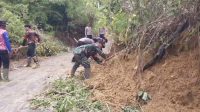 Babinsa, Bhabinkamtibmas dan BPBD Bersama Warga Bersihkan Material Longsor di Hantakan