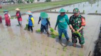 Babinsa Kodim Ponorogo Turun ke Sawah Tanam Padi Wujudkan Ketahanan Pangan