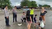 Jangan Lengah, Polisi Ingatkan Wisatawan Pantai Junti Indramayu Jaga Anak-anak Saat Berenang