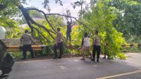 Polsek Lohbener Evakuasi Pohon Tumbang di Jalan Raya Sindangkerta