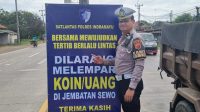 Jelang Ops Lilin Lodaya, Satlantas Indramayu Pasang Imbauan Larangan Lempar Koin di Jembatan Sewo