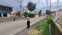 Anggota Kamsel Sat Lantas Polres Majalengka Laksanakan Kontrol Jalur Rawan Banjir Pasca Pengerukan Sungai Cisarongge