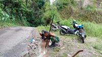 Anggota Koramil Kare Gotong royong Bersihkan Material Longsor di Dusun Kandangan